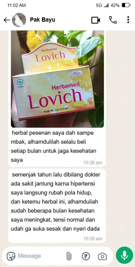 LOVICH adalah suplemen herbal yang dirancang untuk membantu sirkulasi darah, mendukung kinerja jantung, dan memberikan perlindungan antioksidan—agar Anda tetap aktif dan percaya diri.
